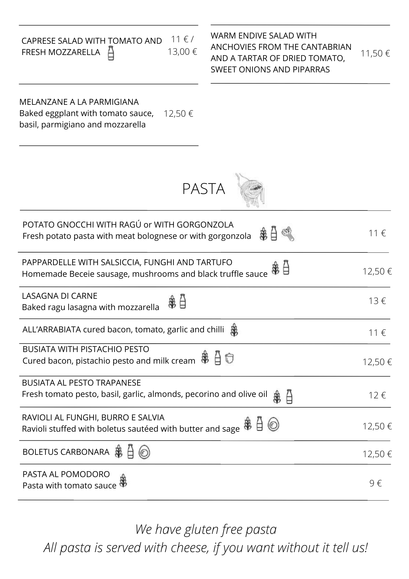 One of our summer specials is busiata a la trapanese. As you may know, each sauce needs its own type of pasta. Come and taste it!